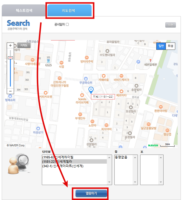 | - 원하는 아파트 선택 후 공시가격 확인 | ||